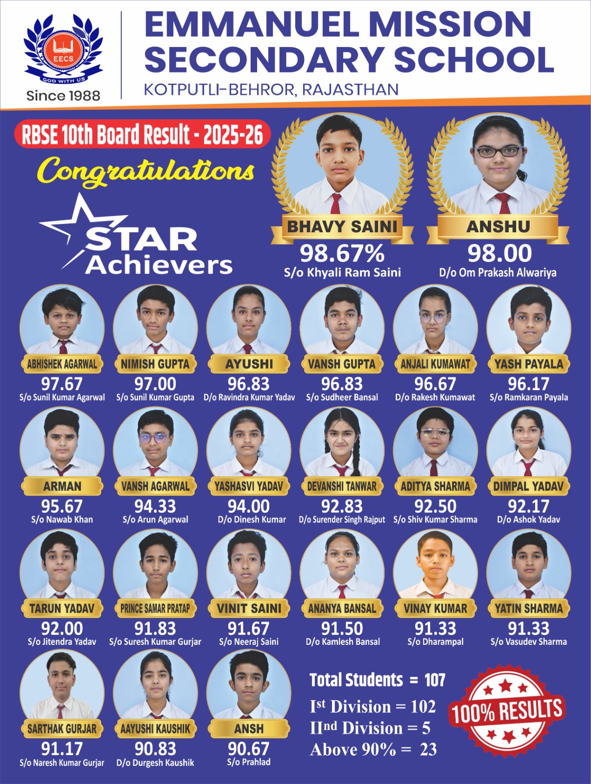 Emmanuel Mission Secondary School is a co-educational, non sectarian day school serving grades Nursery to Tenth class. Through a unique learning experience which will enrich the child both academically and personally. We strive to cultivate the leaders of tomorrow, today. The main aim of the school is to provide quality education to children for their all round development. From past to present, this school continuously achieving its goal in perspective of education.
